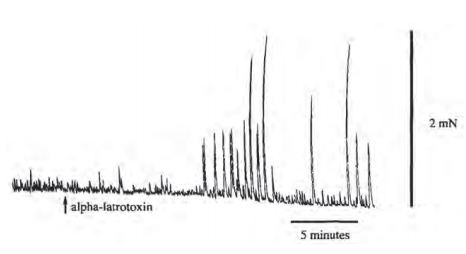Figure 3. Enhanced Recording of Spontaneous Contractions of the Circular Muscle of the Guinea-Pig Distal Colon Circular Muscle in Response to α-Latrotoxin.