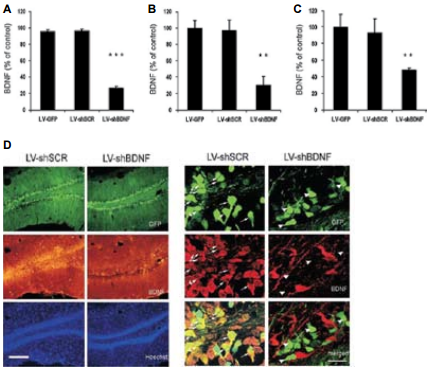 Figure 3. Validation of LV-shBDNF Infection and BDNF Knockdown in vitro and in vivo
