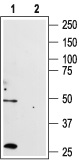 1. Anti-ET-A antibody (#AER-001), (1:200).2. Anti-ET-A antibody, preincubated with the negative control antigen.