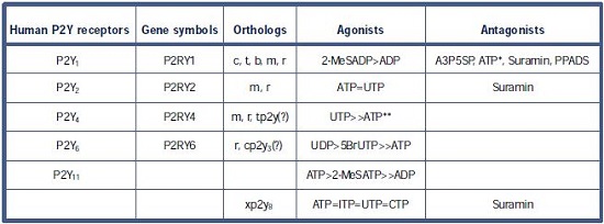 Table 1. The properties of human P2Y receptors and their vertebrate orthologs17.