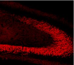 Immunofluorescence staining of P2X7 using Anti-P2X7 Receptor Antibody (#APR-004) of gerbil hippocampus (CA2-CA3), visualized by confocal microscopy.