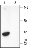 1. Rat brain membranes, Anti-Syntaxin 3 Antibody (#ANR-005) (1:200).