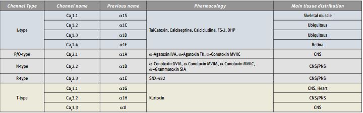 The three T-type (CaV3.1-3) channel isoforms are also widely and differentially distributed and for members of this subfamily as well specific expression of splice variants was demonstrated31.