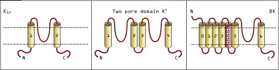 The current classification of K+ channels relies on molecular biology and gene homology. The primary classification divides K+ channels into voltage-dependent K+ (KV) channels (a super family that includes also the EAG and KCNQ families), Ca2+-dependent K+ (KCa) channels, inward rectifier (Kir) and two-pore domain K+channels2 (see Figures 1 and 2 for schematic structures).