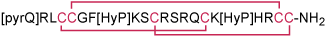 Modifications Disulfide bonds between Cys4-Cys16, Cys5-Cys21, and Cys11-Cys22. Cys22 - C-terminal amidation, Hydroxyprolines at Pro8 and Pro18 and Pyrrolidone carboxylic acid at Q1.