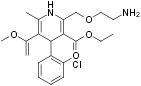 Dihydropyridines (DHP) are molecules that act as allosteric modulators of L-type channels. Many are used in the clinic to treat hypertension2,3. Amlodipine besylate is a DHP that acts as an L-type, voltage-gated Ca2+ channel blocker and is used in the clinic to treat hypertension3,4. Amlodipine inhibits Ca2+-induced contractions in depolarised rat aorta (IC50 1.9 nM) but displays a very slow action onset. Contractions induced by depolarising steps with 45 mM K+ are far less potently blocked by amlodipine (IC50 19.4 nM) and guinea pig papillary muscle single-cell slow action potentials are blocked at a concentration of 5 mM4. Amlodipine besylate inhibits L- and T-type CaV channels with similar potency5.