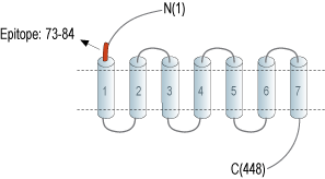 - Peptide CGEQINYGRVEK, corresponding to amino acid residues 73 - 84 of rat 5-HT7 (Accession P32305). Extracellular, N-terminus.
