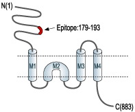 - Peptide NVGNINNDKKDETYR(C), corresponding to amino acid residues 179-193 of rat GluR2 (Accession P19491). Extracellular, N-terminus.