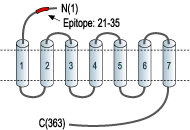 - Peptide DNLNATGTNESAFNC, corresponding to amino acid residues 21-35 of rat AT2 receptor (Accession P35351). Extracellular, N-terminus.