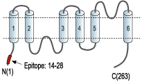 - Peptide (C)REIKGKETNMADSYH, corresponding to amino acid residues 14-28 of rat AQP8 (Accession P56405). Intracellular, N-terminus.