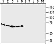 Anti-SLC7A2 (extracellular) Antibody (#ANT-103) is a highly specific antibody directed against an epitope of the rat protein. The antibody can be used in western blot analysis. It recognizes an extracellular epitope and can potentially detect the protein in living cells. It has been designed to recognize Cationic amino acid transporter 2 from mouse, rat, and human samples.