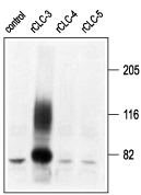 Anti-CLC-3 (CLCN3) Antibody (#ACL-001) is a highly specific antibody directed against an epitope of the rat protein. The antibody can be used in western blot and immunohistochemistry applications. It has been designed to recognize CLC-3 from rat, mouse, and human samples.