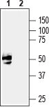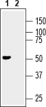 Western blot analysis of mouse brain lysate:1. Anti-GFR alpha 3 (extracellular) Antibody (#ANT-023), (1:200).