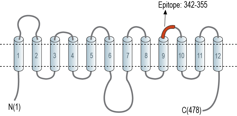 Anti-GLUT8 (extracellular) Antibody (#AGT-028) is a highly specific antibody directed against an extracellular epitope of the rat protein. The antibody can be used in western blot and flow cytometry applications. It has been designed to recognize GLUT8 from mouse, rat and human samples.