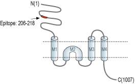 - Peptide (C)KMITTLFDTMRIE, corresponding to amino acid residues 206-218 of rat GluD2 (Accession Q63226). Extracellular, N-terminus.