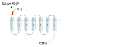 - Peptide (C)EYPKPIHPAGLQPTK, corresponding to amino acid residues 66 - 80 of rat GPR37L1 (Accession Q9QYC5). Extracellular, N-terminus.