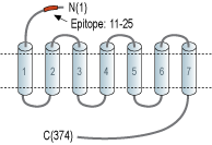 - Peptide RNTNESGEEVTTFFD(C), corresponding to amino acid residues 11-25 of human CCR2 (Accession P41597). Extracellular, N-terminus.