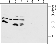 Anti-Human FPR1 (extracellular) Antibody (#AFR-001) is a highly specific antibody directed against an epitope of the human N-formyl peptide receptor 1. The antibody can be used in western blot and indirect live cell flow cytometry applications. It has been designed to recognize FPR1 from human samples only.
