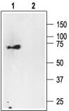 Western blot analysis of human melanoma cells A875:1. Anti-p75 NGF Receptor (intracellular) Antibody (#ANT-011), (1:200).