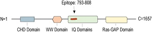 - Peptide (C)KAYQDRLAYLRSHKDE, corresponding to amino acid residues 793 - 808 of human IQGAP1 (Accession P46940). Intracellular.