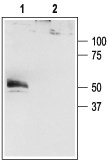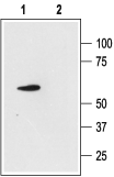 Western blot analysis of HEK-293-KCNK4 transfected cells:1. Anti-KCNK4 (TRAAK) Antibody (#APC-108), (1:200).