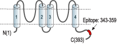 - Peptide NLAFIDESSDTQSERGC, corresponding to amino acid residues 343-359 of human KCNK4 (Accession Q9NYG8). Intracellular, C-terminus.