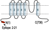 - Peptide DTSGHFHDSGVGDLDEDPKC, corresponding to amino acid residues 2-21 of human KCNN3 (Accession Q9UGI6). Intracellular, N-terminus.