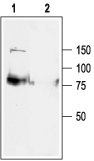 Western blot analysis of rat heart membranes:1. Anti-KCNQ1 Antibody (#APC-022), (1:200).