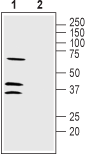 Western blot analysis of rat brain membranes:1. Anti-LRRC26 Antibody (#APC-070), (1:200).