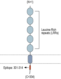 - Peptide (C)RRTTVRHLIRRQPD, corresponding to amino acid residues 301-314 of rat LRRC26 (Accession Q6P7C4). Intracellular, C-terminus.
