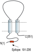 - Peptide CIEQHQLNKERELIER, corresponding to amino acid residues 191-206 of human mitochondrial calcium uniporter (Accession Q8NE86). N-terminus, mitochondrial matrix.