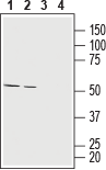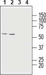 Anti-MCT1 (SLC16A1) (extracellular) Antibody (#AMT-011) is a highly specific antibody directed against an epitope of rat Monocarboxylate transporter 1. The antibody can be used in western blot, immunohistochemistry, and indirect live cell flow cytometry applications. It has been designed to recognize MCT1 from rat, mouse, and human samples.