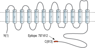 - Peptide (C)RASEPGNRKGRLGNEK, corresponding to amino acid residues 797-812 of rat NHE-2 (Accession P48763). Intracellular, C-terminus.