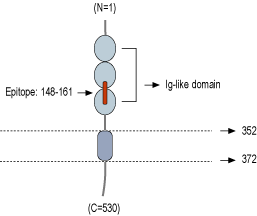 - Peptide (C)RVIAQPENHAEAQE, corresponding to amino acid residues 148-161 of mouse Nectin-2 (Accession P32507). Extracellular, N-terminus.