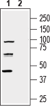 Western blot analysis of human U-87 MG glioblastoma cell line lysate:1. Anti-Nectin-3/PVRL3 (extracellular) Antibody (#ANR-053), (1:200).