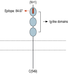 - Peptide (C)ETITQISWEKIHGK, corresponding to amino acid residues 84-97 of mouse Nectin-3 (Accession Q9JLB9). Extracellular, N-terminus.