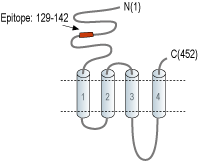 - Peptide (C)EGASTKTVVRYNGT, corresponding to amino acid residues 129-142 of rat nAChRα5 (Accession P20420). Extracellular, N-terminus.