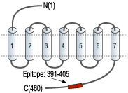 - Peptide (C)DRLARGRTSTESRKS, corresponding to amino acid residues 391-405 of rat OX2R (Accession P56719). Intracellular, C-terminus.