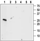 Western blot analysis using Anti-proBDNF Antibody (#ANT-006), (1:400):1. Recombinant human proBDNF protein (#B-257), (20 ng).