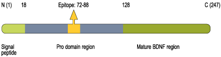 All neurotrophins are synthesized as preproneurotrophin precursors that are subsequently processed within the intracellular transport pathway to yield proneurotrophins that are further processed to generate the mature form. The mature form of BDNF is a non-covalent stable homodimer that can be secreted in both constitutive and regulated pathways.