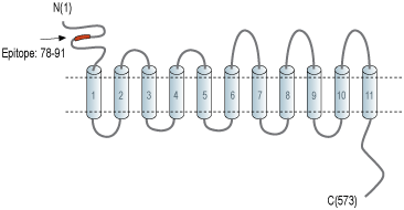 - Peptide (C)KRSEPHLDYHEFSE, corresponding to amino acid residues 78-91 of mouse SLC41A2 (Accession Q8BYR8). Extracellular, N-terminus.