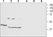Anti-TRHR1 Antibody (#ATR-005) is a highly specific antibody directed against an epitope of the rat Thyrotropin-releasing hormone receptor 1. The antibody can be used in western blot and immunocytochemistry applications. It has been designed to recognize TRH-R from rat, mouse, and human samples.