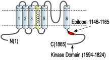 - Peptide CKRRKKDKTSDGPKLFLTEE, corresponding to amino acid residues 1146-1165 of human TRPM7 (Accession Q96QT4). Intracellular, C-terminus.