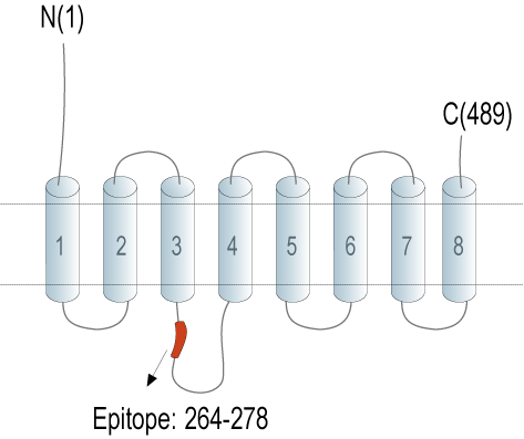 - Peptide (C)KDQEEGVTEKLQNGD, corresponding to amino acid residues 264 - 278 of mouse SLC39A14 (Accession Q75N73). Intracellular, 2nd loop.