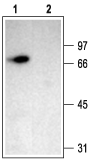 Western blot analysis of rat brain membranes:1. Anti-ASIC2a Antibody (#ASC-012), (1:200).