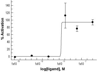 Alomone Labs BQ-3020 activates Endothelin B receptor-mediated Ca2+ mobilization in CHO-K1-mt Aequorin cells.Dose-response curve of normalized activation of the Endothelin B receptor-mediated Ca2+ mobilization, evoked by BQ-3020 (#SPE-200). Ca2+ response was detected by measuring aequorin-derived fluorescence following application of BQ-3020 and Endothelin-1 at different concentrations. The EC50 measured for BQ-3020 is 23 pM.