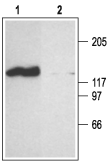 Western blot analysis of rat brain membranes:1. Anti-CNGA2 Antibody (#APC-045), (1:200).