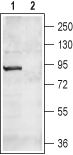 Western blot analysis of rat brain lysate:1. Anti-CNGA4 Antibody (#APC-074), (1:200).