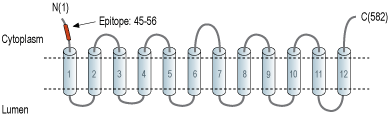 - Peptide (C)EDGKPLEVPEKK, corresponding to amino acid residues 45-56 of rat VGLUT2 (Accession Q9JI12). Cytoplasmic, N-terminus.