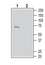 Western blot analysis of rat brain lysates:1. Anti-KCNC4 (KV3.4) Antibody (#APC-019), (1:200).